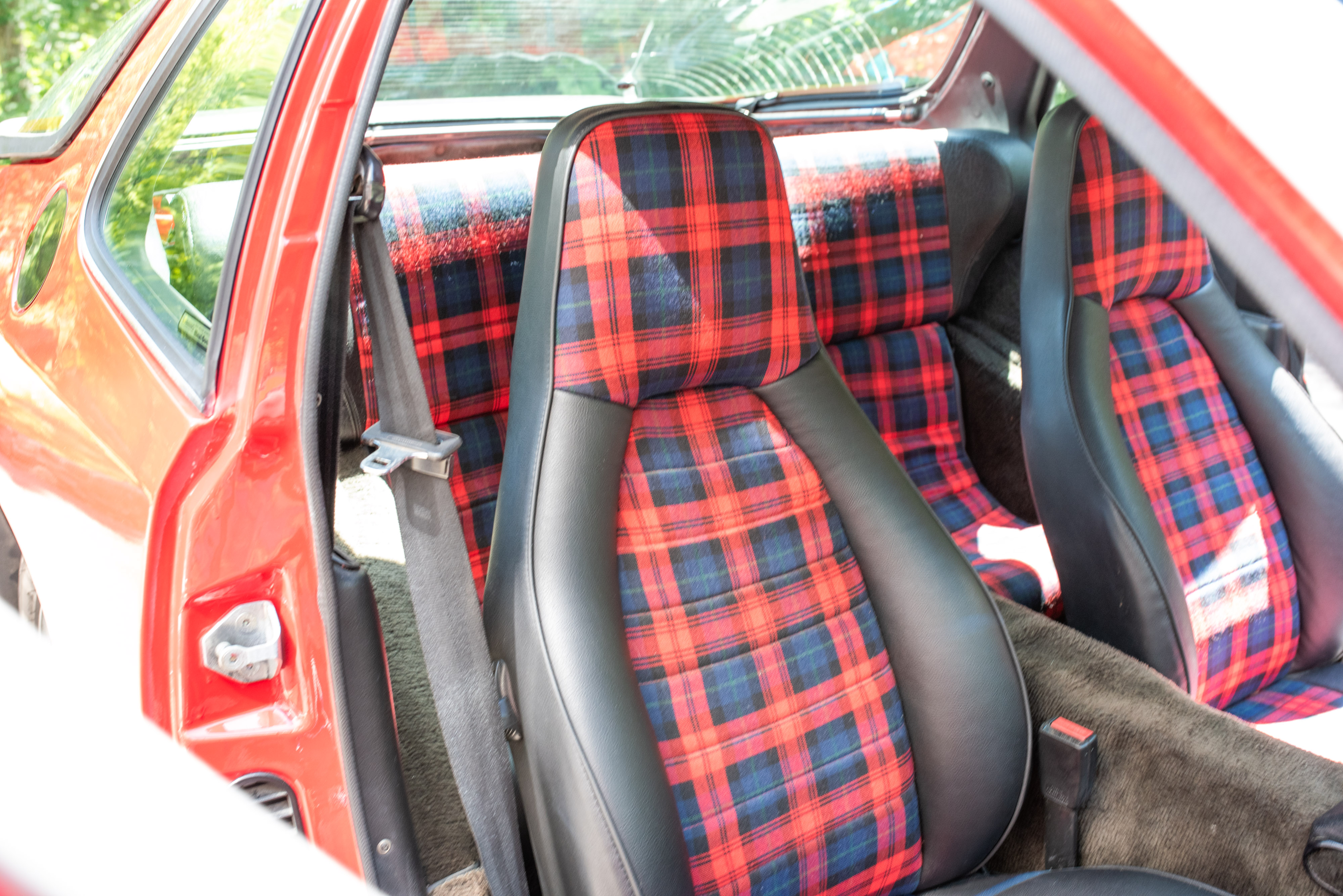 - Interior: Black with custom plaid inserts