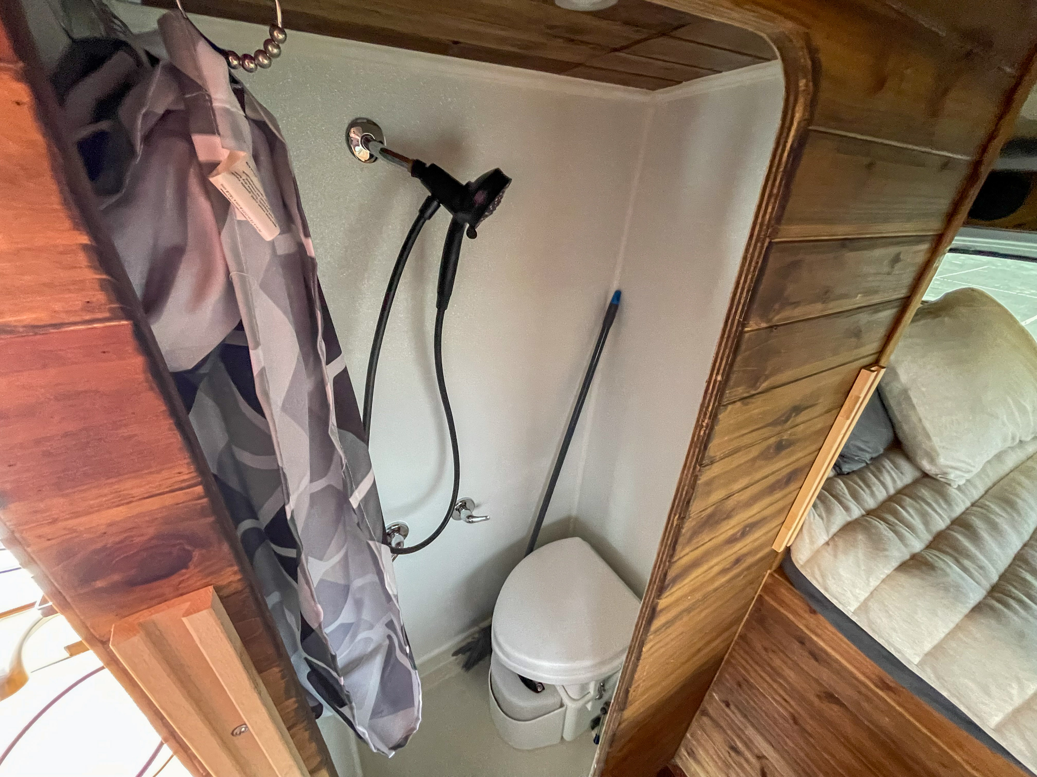 - Indoor bathroom and shower